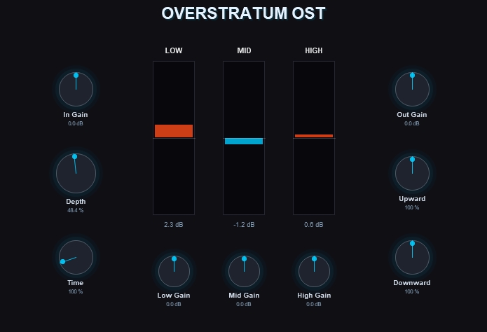 Overstratum OST – inspired by a world-famous, highly aggressive multiband compressor from another great DAW. This plugin is perfect for all kinds of electronic beats, but also works wonders on vocals, metal, or cinematic music.
